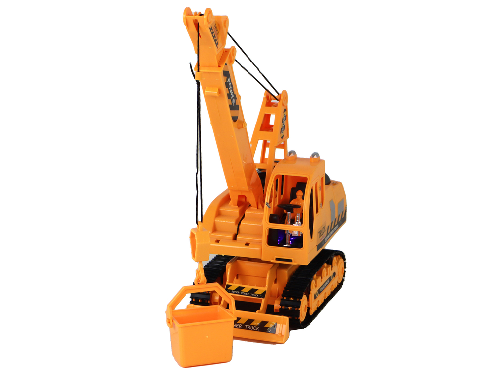 Ta zabawka ma wbudowane efekty świetlne i dźwiękowe, które dodają realizmu. Podczas jazdy dźwig wydaje dźwięki, a kabina kontrolna świeci się. To tworzy wrażenie pracy maszyny i dodaje do zabawy.