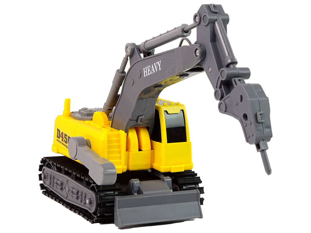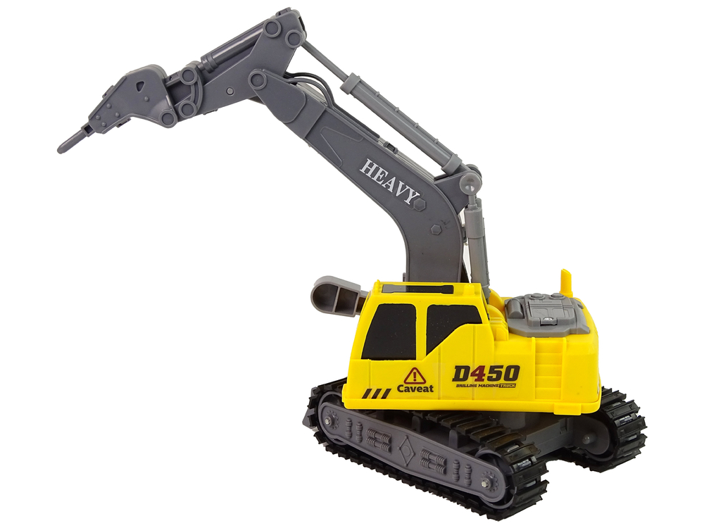 Gumowe, czarne gąsienice zapewniają stabilność i doskonałą trakcję, co pozwala na swobodne poruszanie się koparki po różnych powierzchniach. Koparka może poruszać się do przodu i do tyłu, dając dzieciom większą swobodę w przemieszczaniu się i tworzeniu różnych scenek.