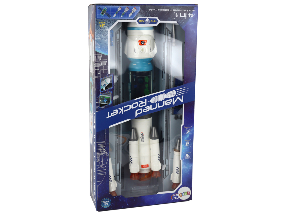 W zestawie znajduje się rakieta kosmiczna, która może być zbudowana w trzech różnych konfiguracjach, co pozwala dzieciom eksperymentować i tworzyć własne modele rakiet. Rakieta jest wykonana z dbałością o szczegóły i ma realistyczny wygląd. Na rakiecie znajduje się przycisk dotykowy, który uruchamia efekty dźwiękowe, w tym dźwięk startującej rakiety, co dodaje emocji do zabawy.