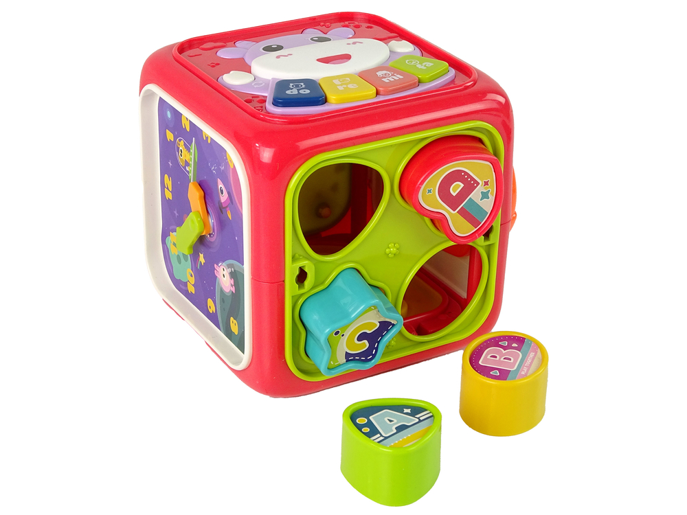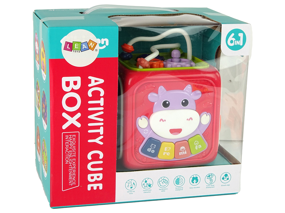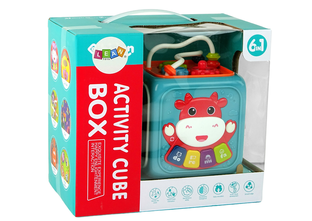 Dodatkowo, kostka posiada ruchomą kulkę, która zapewnia interaktywną zabawę, a także grające klawisze, które zachęcają do tworzenia dźwięków.