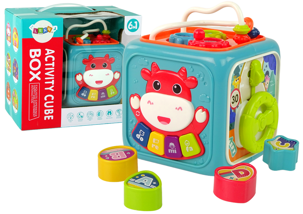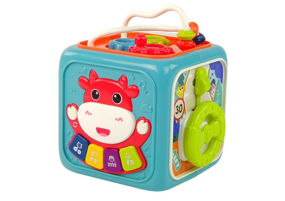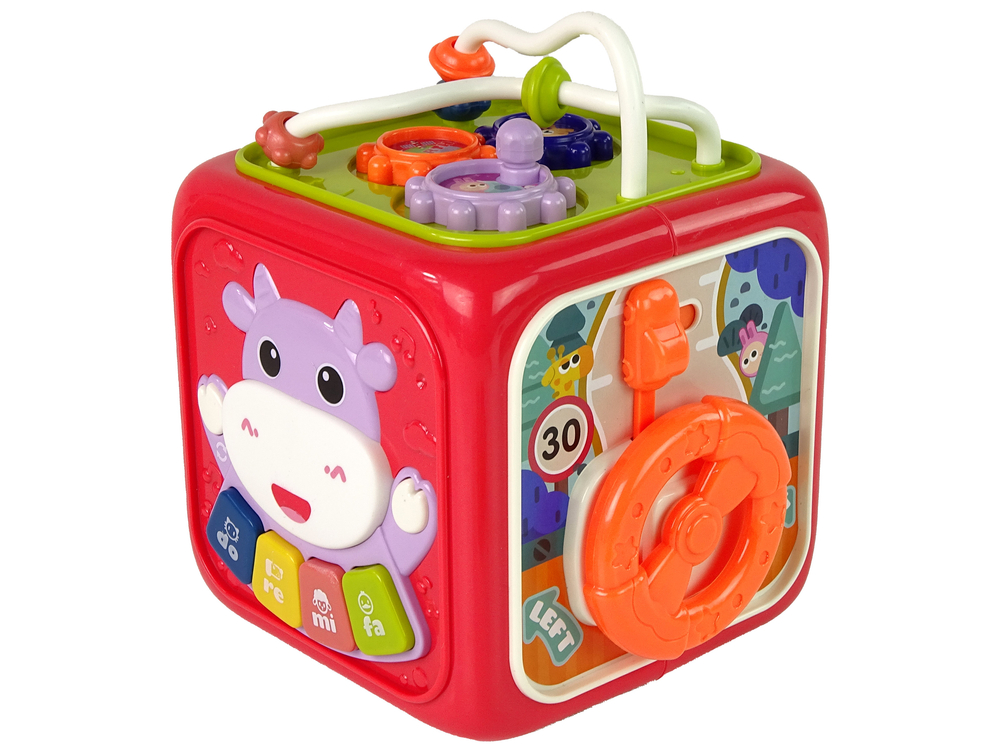 Każda ze stron kostki oferuje inne elementy do eksploracji, rozwijając tym samym różnorodne umiejętności malucha. Na jednej stronie znajduje się kierownica, którą można obracać, pozwalając dziecku poczuć się jak prawdziwy kierowca.