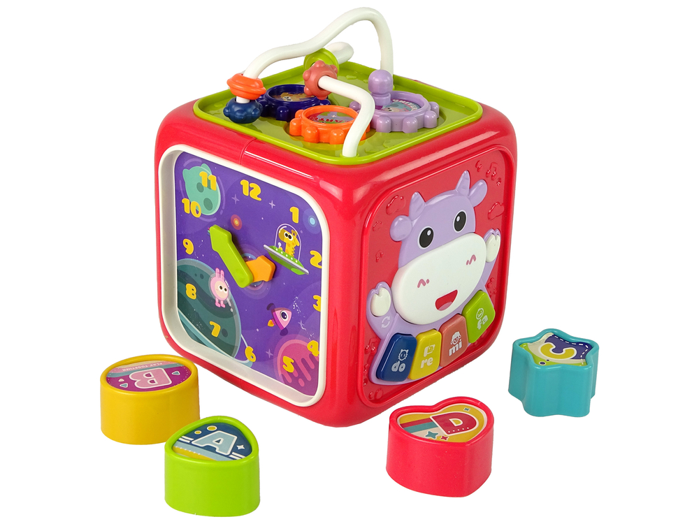 Na innej ściance kostki znajduje się zegar, dzięki któremu dziecko może poznać podstawowe pojęcia związane z czasem, a także ćwiczyć liczenie godzin.