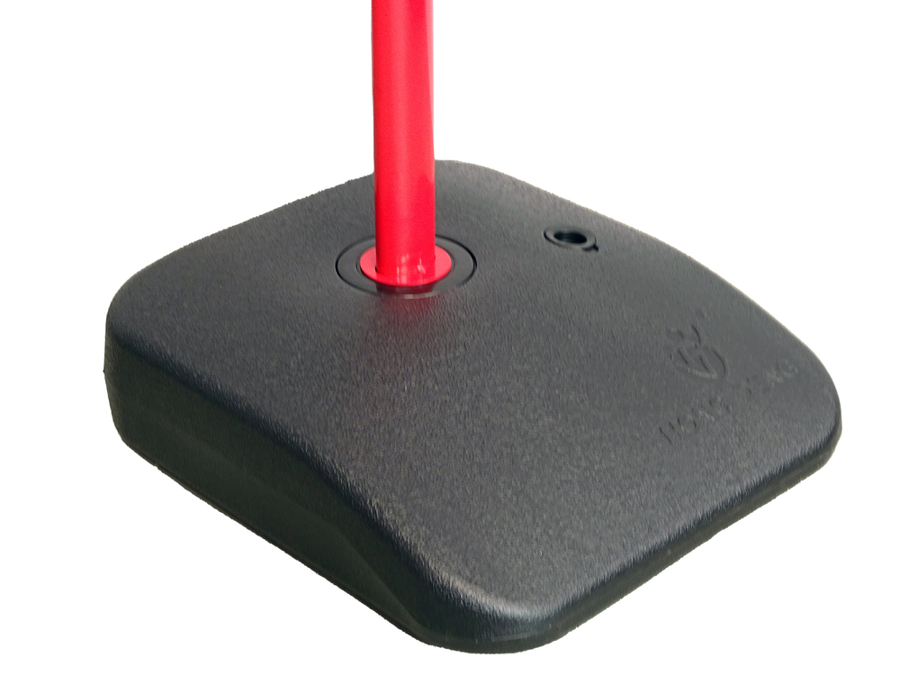 Prezentowany zestaw do gry nadaje się do zabawy na zewnątrz. Podstawa posiada otwór z zamknięciem – do odpowiedniego obciążenia stojaka podczas zabawy. Bez problemu można wlać do środka wodę bądź wsypać piasek, a kosz się nie przewróci.