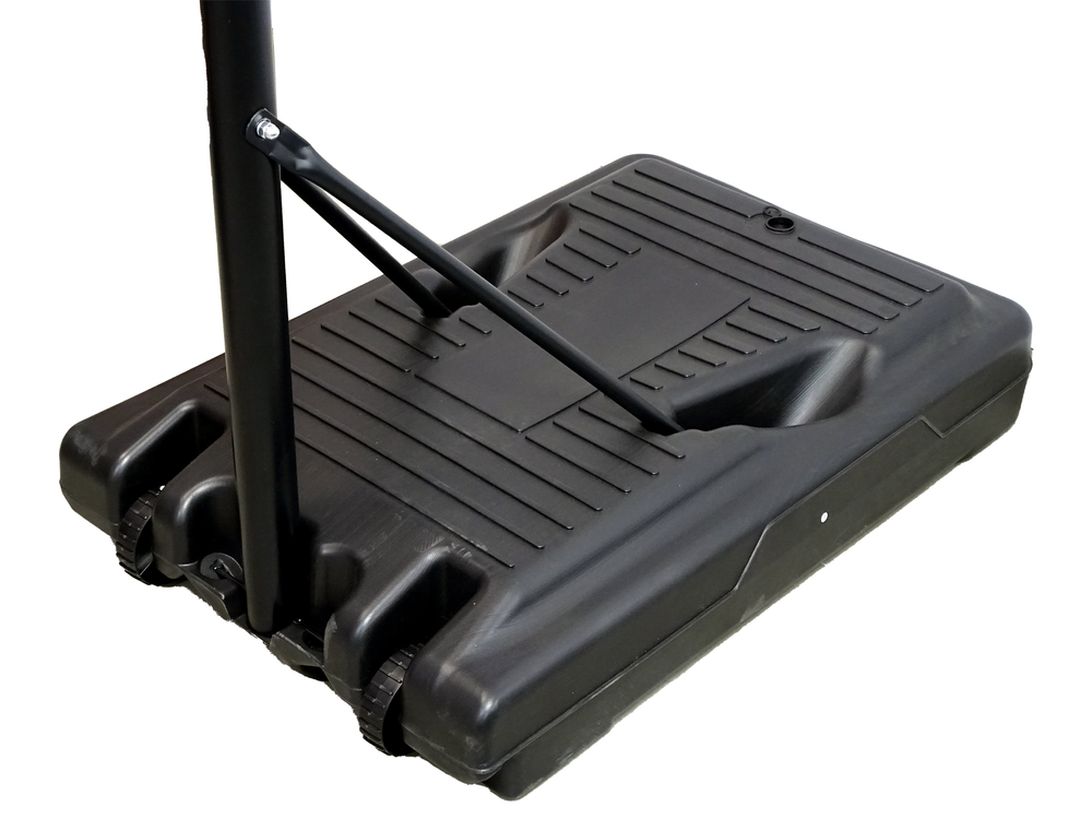 Prezentowany zestaw do gry nadaje się do zabawy na zewnątrz. Podstawa posiada otwór z zamknięciem – do odpowiedniego obciążenia stojaka podczas zabawy. Bez problemu można wlać do środka wodę bądź wsypać piasek, a kosz się nie przewróci. Dodatkowe zamontowane kółka u podstawy umożliwią przemieszczanie kosza z miejsca na miejsce.