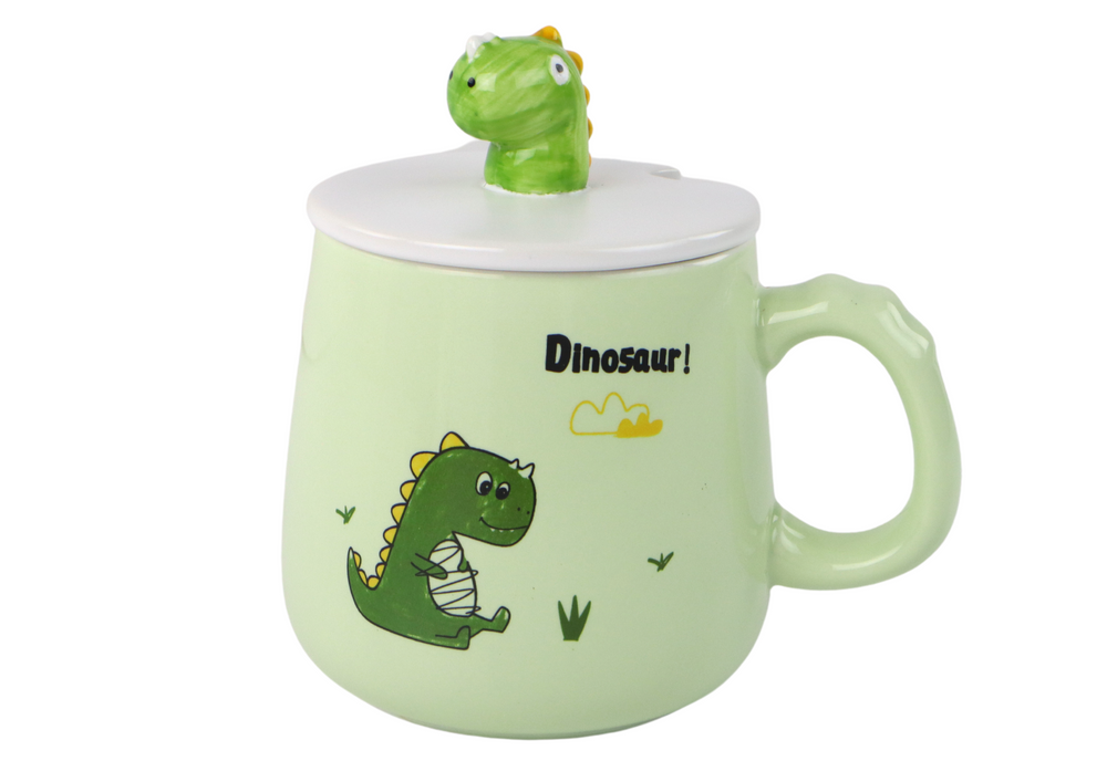 Kubek Ceramiczny Dinozaur Zielony Przykrywka Łyżeczka 350ml