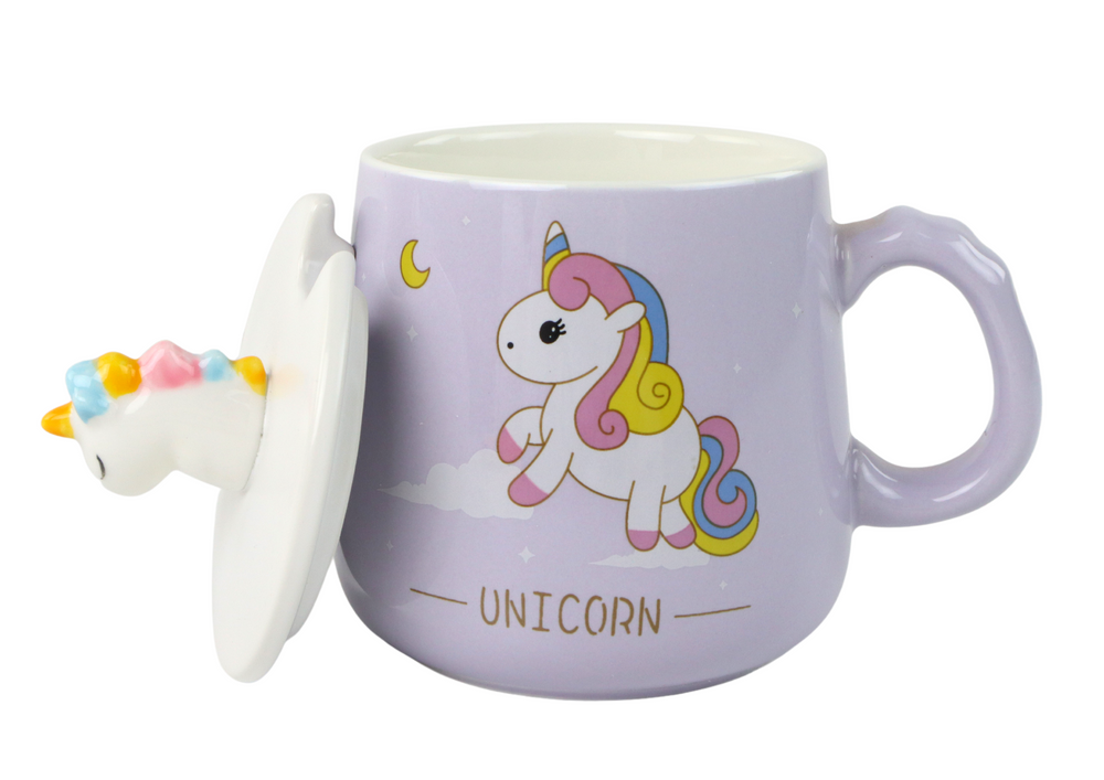 Przykrywka kubka posiada przestrzenny, kolorowy jednorożec, który dodaje trójwymiarowego efektu. To nie tylko ozdoba, ale także element, który sprawia, że kubek staje się wyjątkowy.