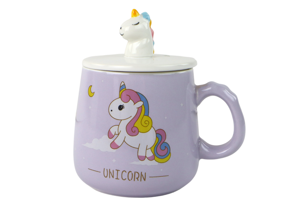 Kubek Jednorożec Fioletowy Wzór Łyżeczka Przykrywka