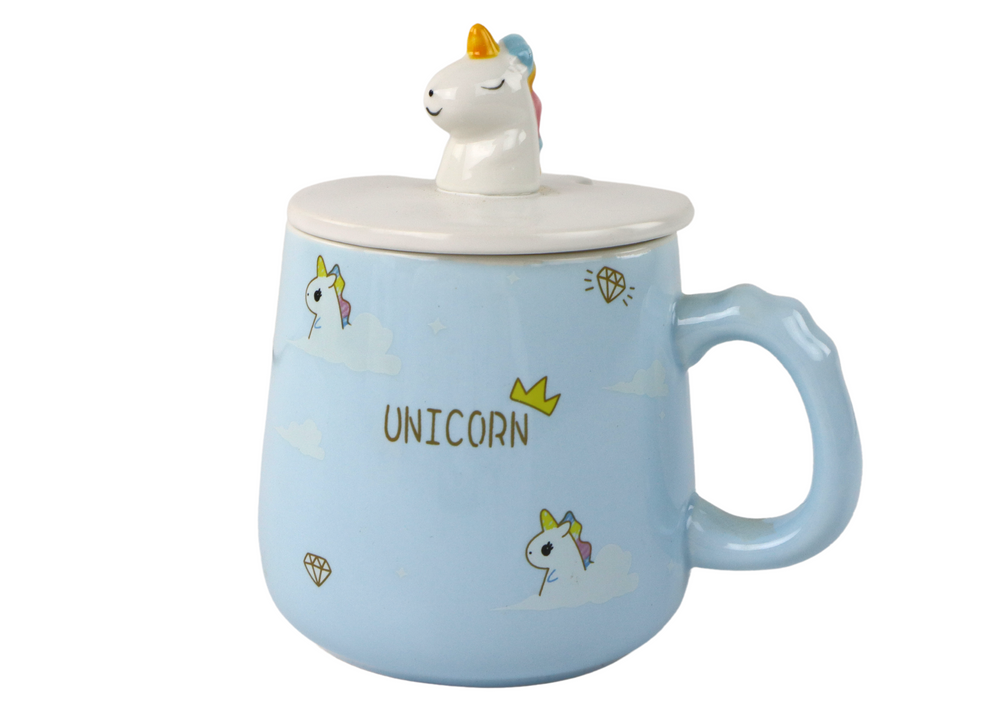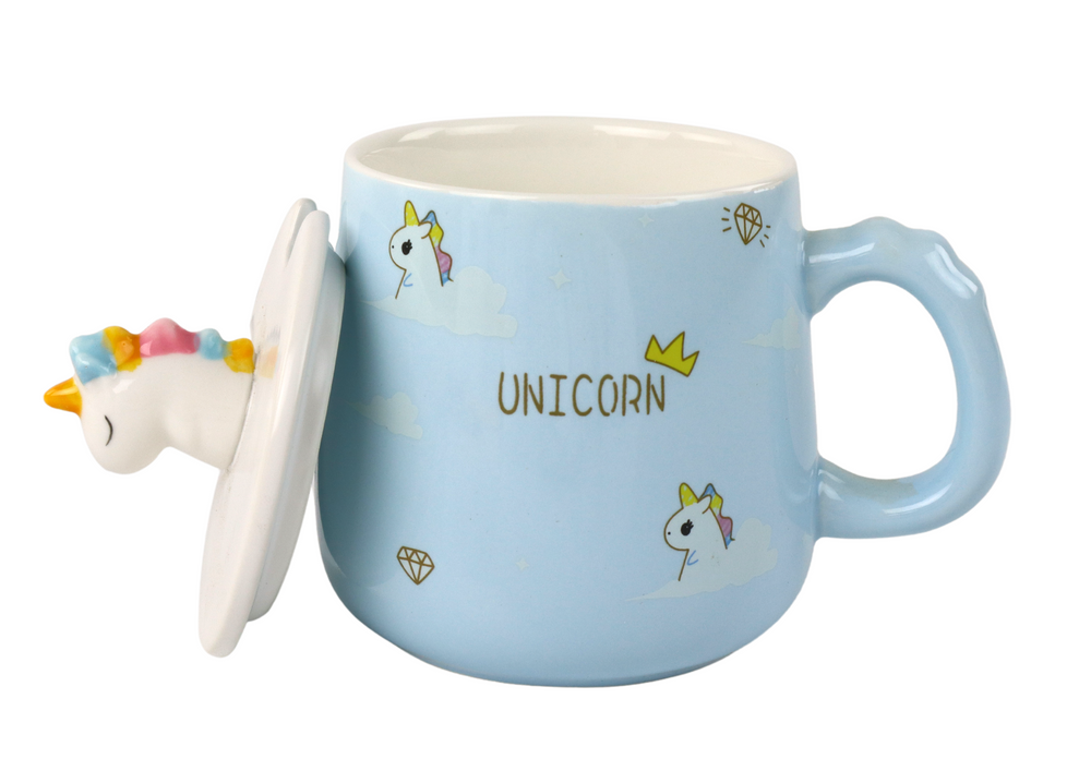 Kubek Jednorożec Niebieski Wzór Łyżeczka Przykrywka