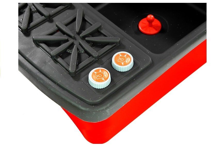 Zlewozmywak połączony jest z kuchenką z dwoma palnikami. Tuż pod nimi umieszczone są dwa pokrętła, wydające specyficzny dźwięk podczas przekręcania. Dzięki nim kilkulatek może bawić się w naśladowanie dorosłych, którzy przygotowują smaczne posiłki, a także poznać zasady bezpieczeństwa panujące w każdej kuchni.