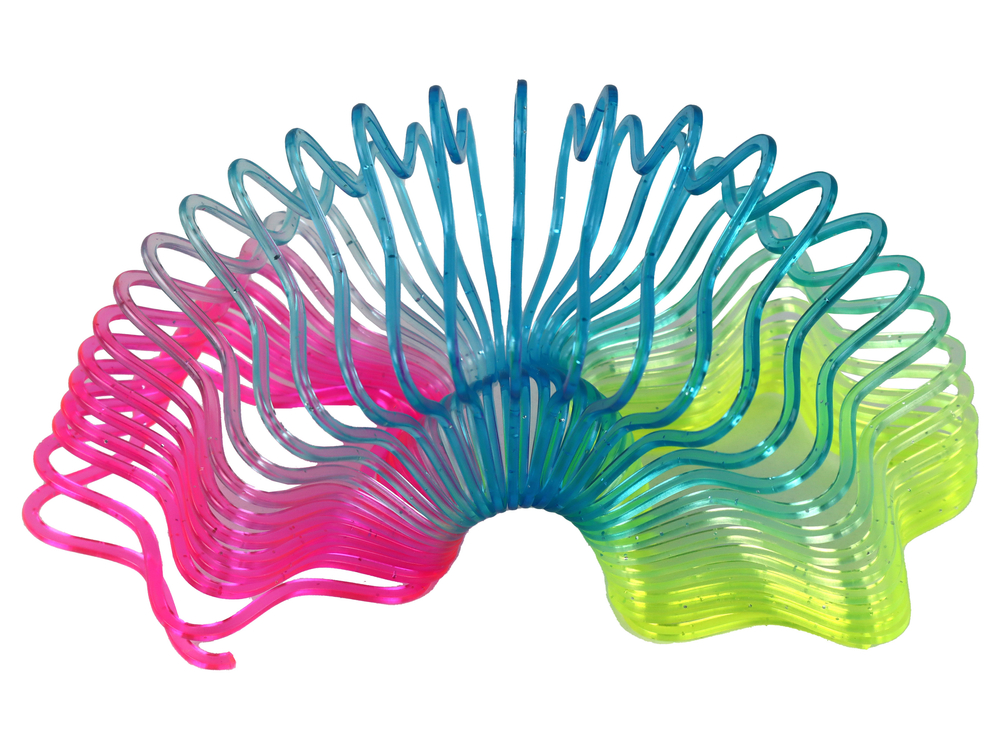Prezentujemy kultową sprężynę w kolorze tęczowym. Ta wyjątkowo elastyczna i zabawna sprężyna z pewnością zachwyci zarówno małe dzieci, jak i dorosłych. Możliwości zabawy tą wielokolorową zabawką są nieograniczone, a jej brokatowe zdobienie dodaje jej wyjątkowego uroku.