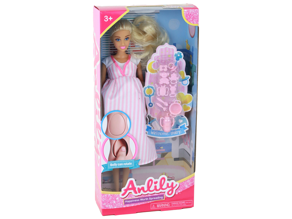 Lalka Anlily Mama Różowa Sukienka Brzuszek Ciążowy Niemowlę