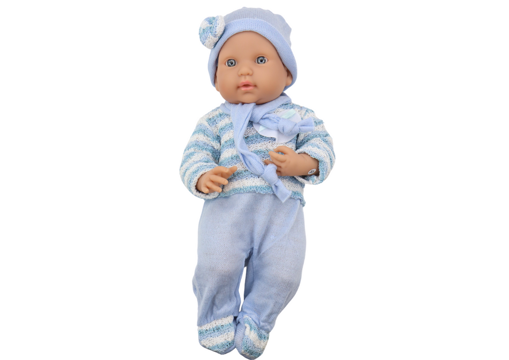 Lalka Bobas Sweterek w Paski Czapeczka Szalik Niebieski