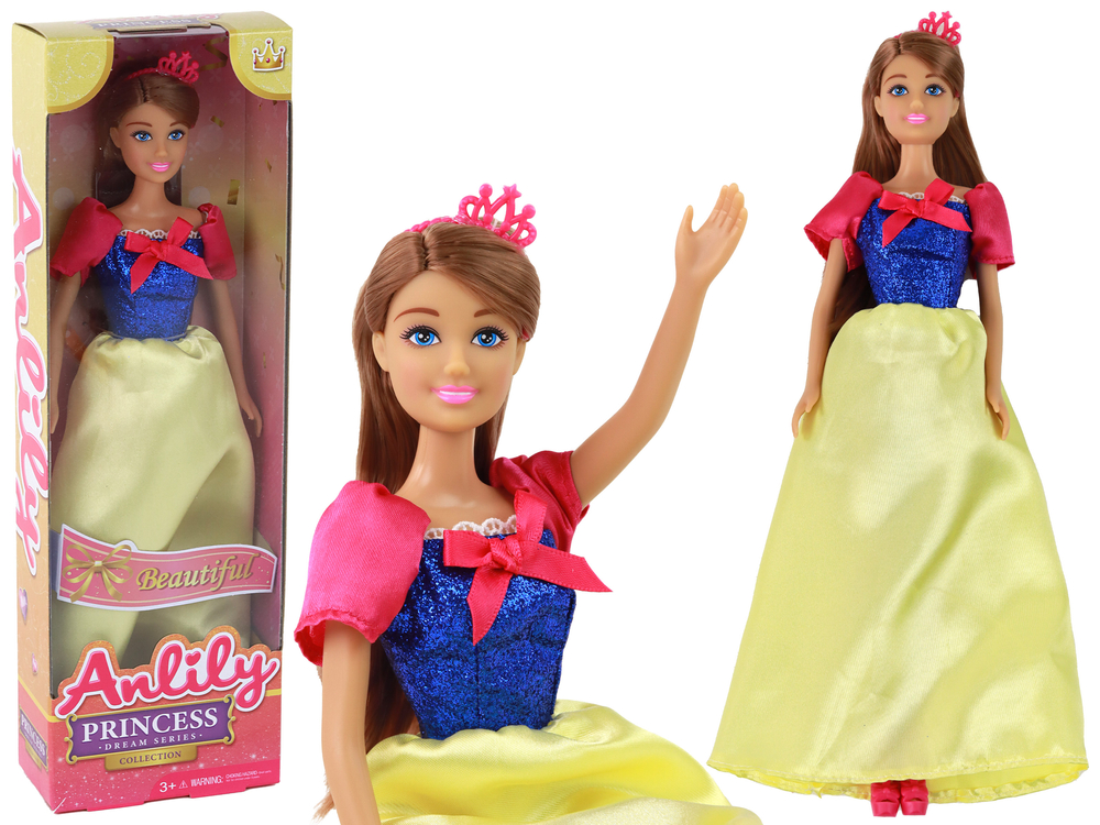Lalka Dla Dzieci Anlily Księżniczka Długie Ciemne Włosy Żółta Sukienka