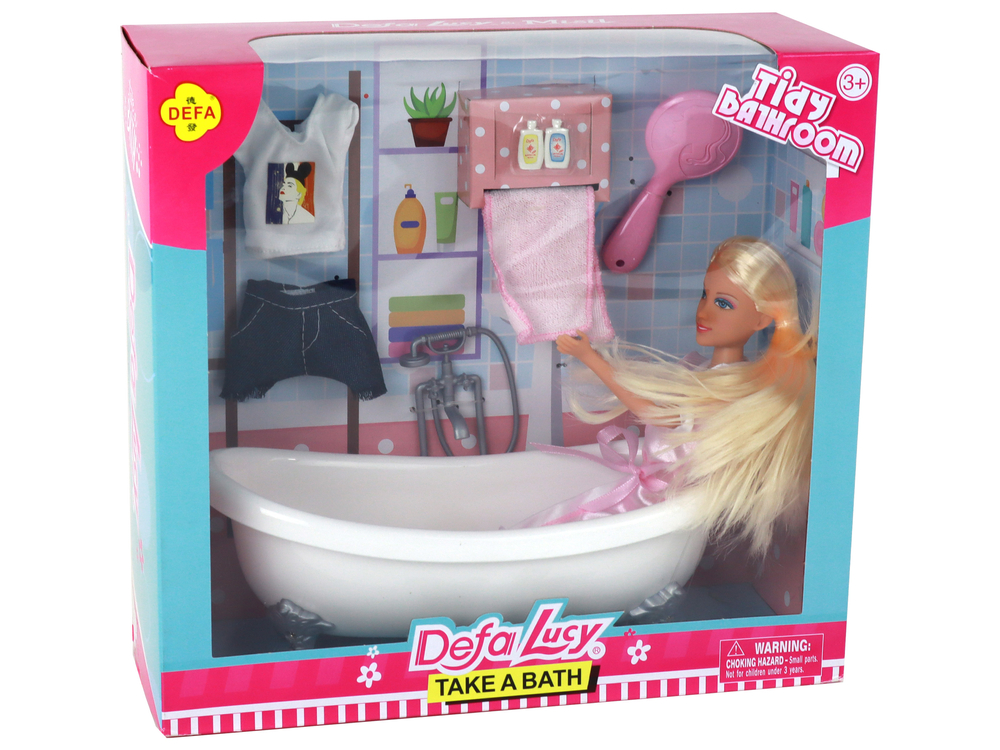 Lalka Dla Dzieci Długie Blond Włosy Szlafrok Różowy Wanna Łazienka