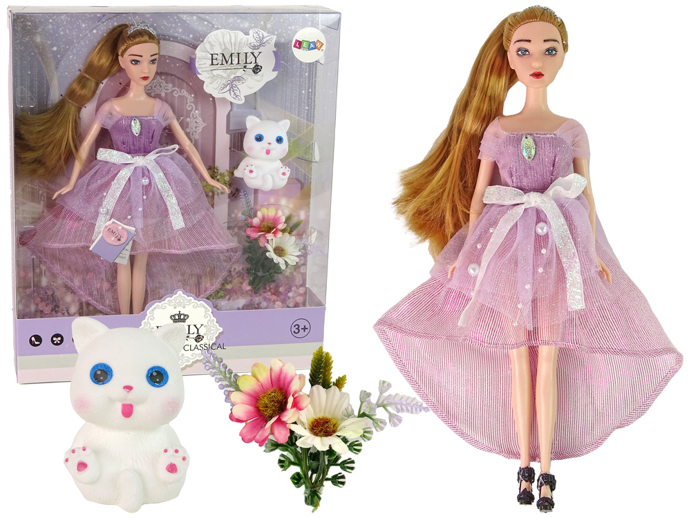 Lalka Dla Dzieci Emily Długie Włosy Biały Kotek