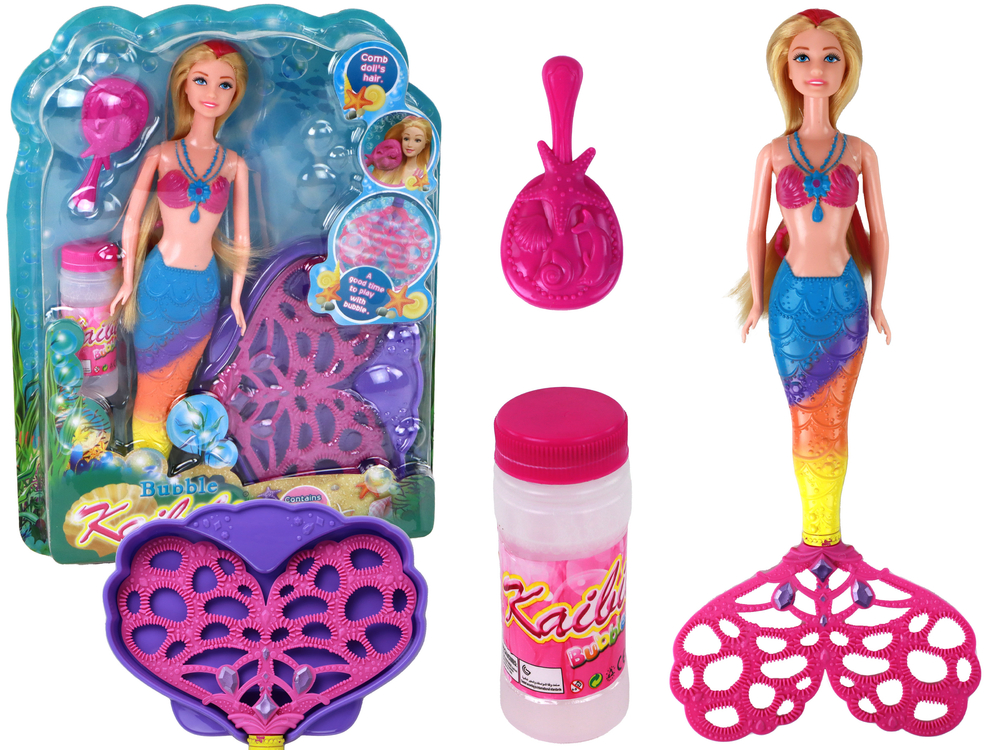 Lalka Dla Dzieci Tęczowa Syrenka Magiczny Ogon Bańki Mydlane