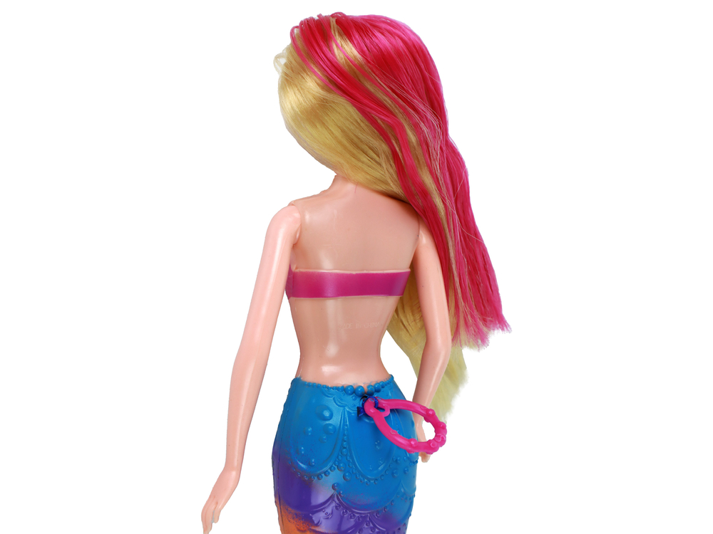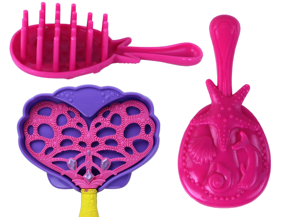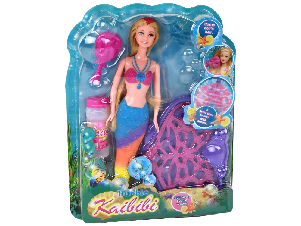 Ale to nie wszystko! Ogon syrenki pełni także niezwykłą funkcję – tworzenia baniek mydlanych! Dzięki płetwom ogona można wyczarować magiczne bańki, które unoszą się w powietrzu, tworząc fascynujący efekt wizualny. W zestawie z lalką znajduje się różowa szczotka do włosów, dzięki której możesz pielęgnować i uczesać jej długie włosy.