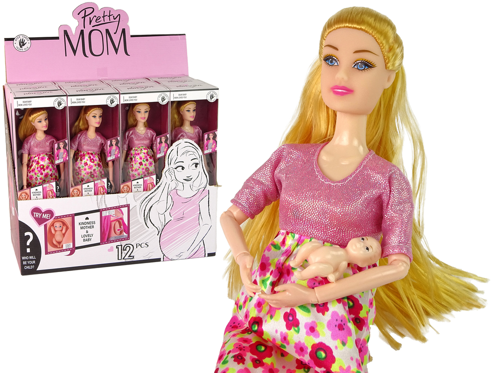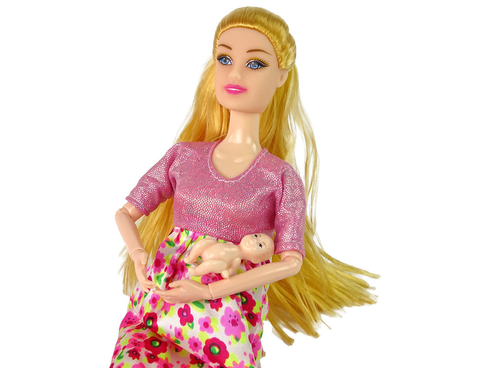 Lalka Dla Dzieci W Ciąży Różowa Sukienka Kwiaty