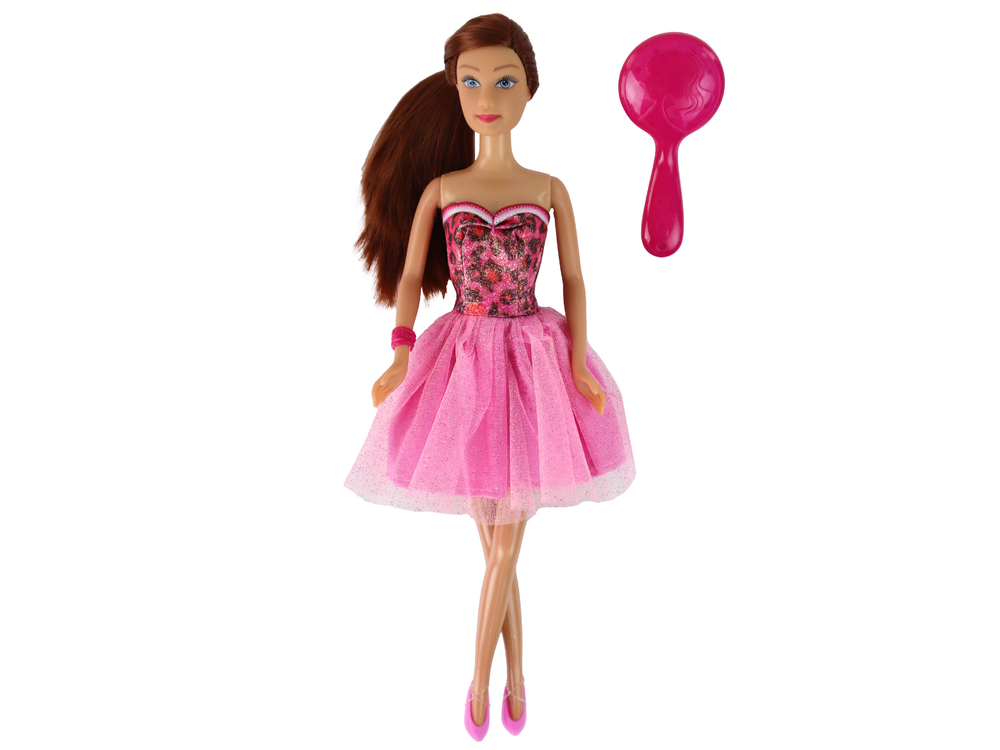 Aby utrzymać piękne brązowe włosy lalki w doskonałym stanie, w zestawie znajduje się również różowa szczotka do włosów, dzięki której dziecko może dbać o fryzurę swojej ukochanej lalki.