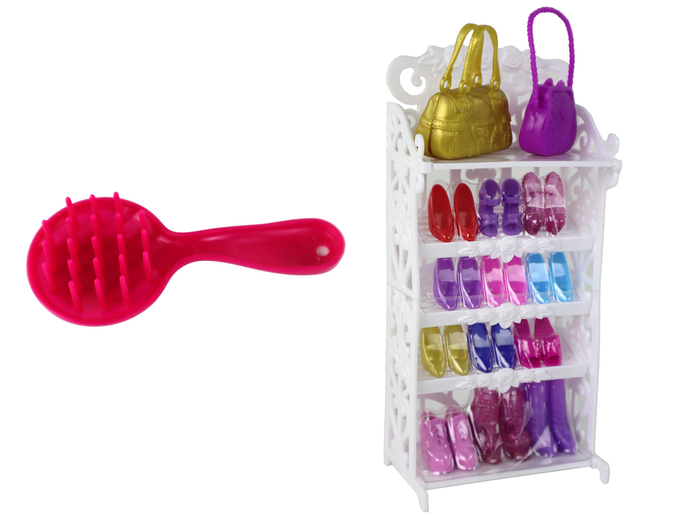 Co więcej, w zestawie z lalką znajduje się szafka z butami i torebkami. W tej uroczej szafce można przechowywać 12 różnych par eleganckich butów dla lalki, które pasują do różnych okazji i stylizacji. Buty występują w różnych kolorach, co pozwala dziecku tworzyć różnorodne zestawy ubrań dla swojej lalki.