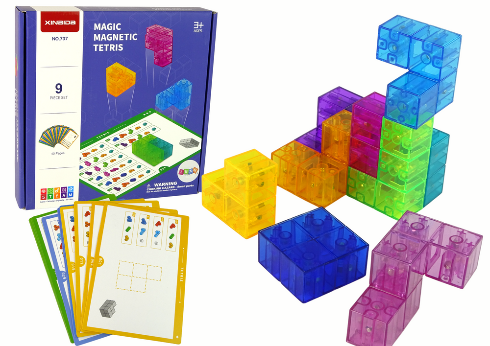 Zestaw magnetycznych klocków, który składa się z siedmiu klocków o różnych kolorach, a co najważniejsze, przepuszczających światło. To oznacza, że Twoje dziecko może tworzyć nie tylko trójwymiarowe konstrukcje, ale także eksperymentować z efektami świetlnymi.