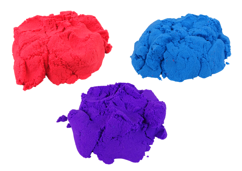 -Piasek kinetyczny w 3 kolorach: czerwony, fioletowy, niebieski