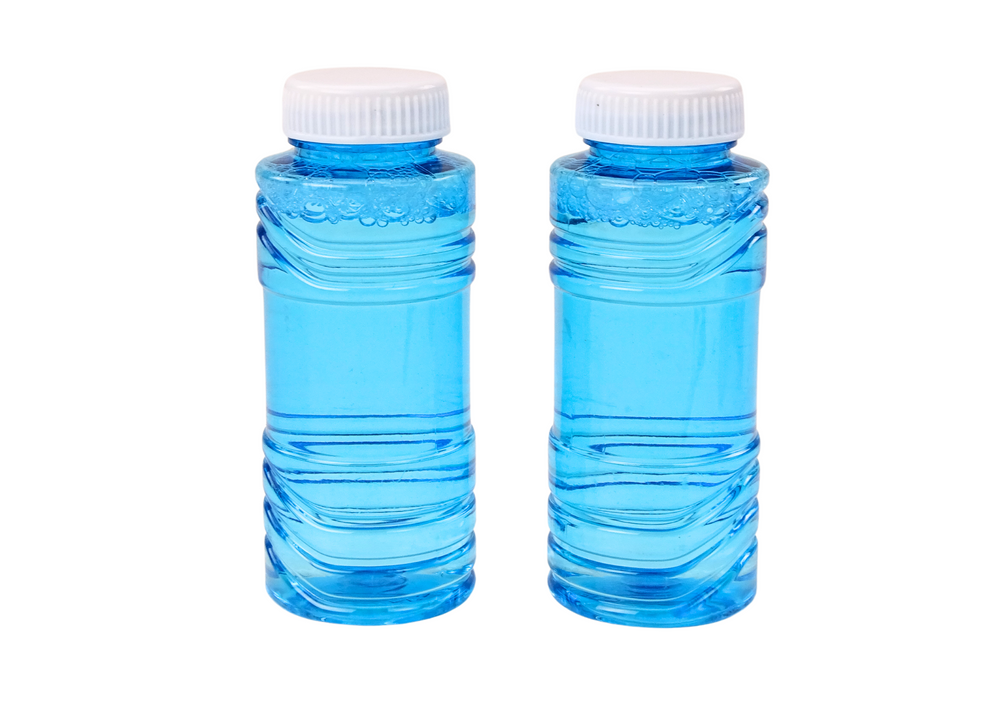 W zestawie znajdują się dwie buteleczki płynu do baniek mydlanych, dzięki czemu dzieci mogą od razu rozpocząć tworzenie bańkowych dzieł sztuki.