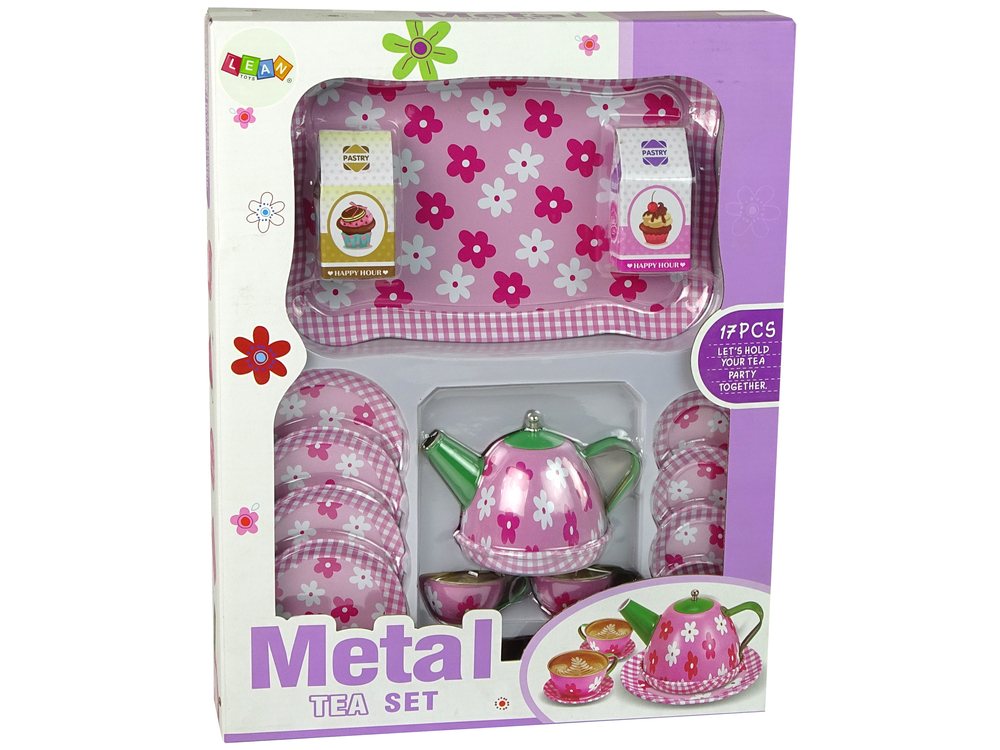 Metalowy Serwis Do Herbaty Filiżanki Talerzyki Kwiatowy Różowy