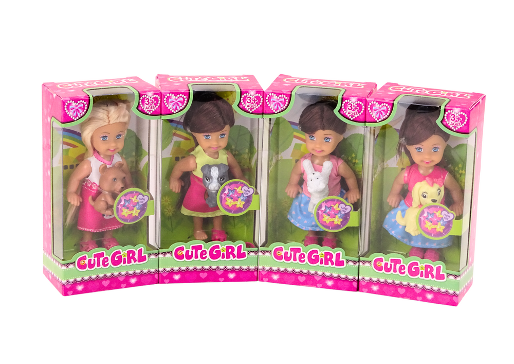 Mini Laleczka Długie Włosy Sukienka Kolorowa Piesek