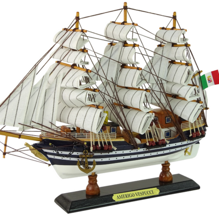 Boki statku tuż przed dziobem są zabezpieczone kotwicami, które dodają autentyczności i pozwalają na odwzorowanie typowych elementów marynarskiego wyposażenia. Statek jest umieszczony na solidnej drewnianej podstawie, co stabilnie utrzymuje go na miejscu i pozwala na eksponowanie go w dowolnym miejscu. Ten realistyczny model statku „Suomen Joutsen” to prawdziwe dzieło sztuki, które zachwyca swoim wykonaniem i dbałością o szczegóły. To znakomity element dekoracyjny, który nie tylko prezentuje wspaniały żaglowiec, ale także przypomina o historii i znaczeniu tego statku dla marynarki wodnej. To także wspaniały prezent dla miłośników żeglarstwa, morskich przygód oraz miłośników modelarstwa.