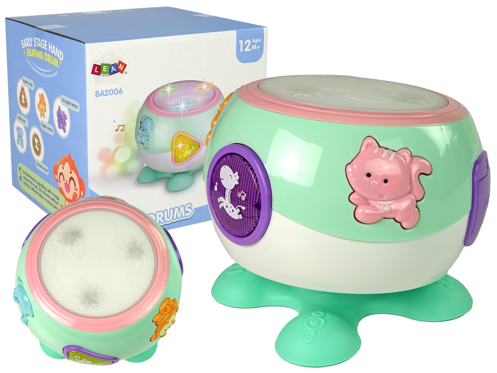 Interaktywna zabawka, w postaci bębenka, dla maluszków zapewni mnóstwo wesołej zabawy każdemu dziecku. Na zabawce przedstawione są zwierzątka. Zabawka wykonana jest z plastiku, w uroczych kolorowych barwach. Membrana perkusji wykonana jest z miękkiego materiału, dzięki czemu dziecko będzie mogło bezpiecznie w nią uderzać. Zabawka pozytywnie wpływa na rozwój dziecka. Dzieci poznają kształty i kolory. Przez pierwszy dotyk, odkrywają otaczający ich świat i doskonalą swoje umiejętności. Zachęci do poprawiania motoryki, uczy nowych ruchów oraz umiejętności.