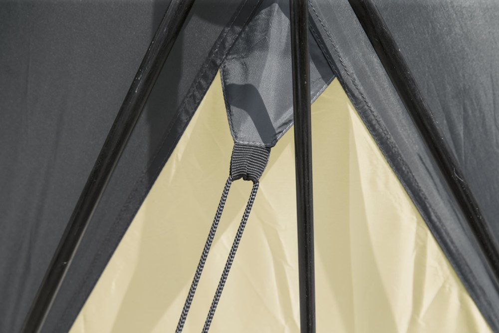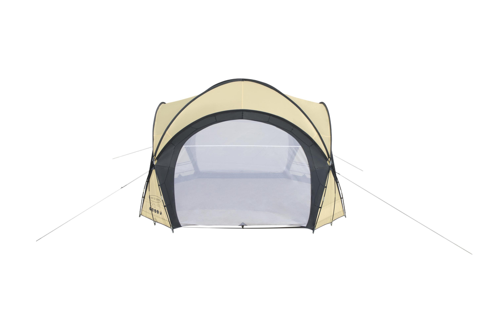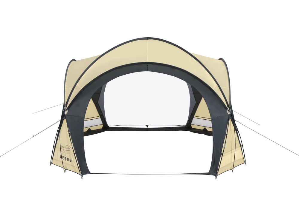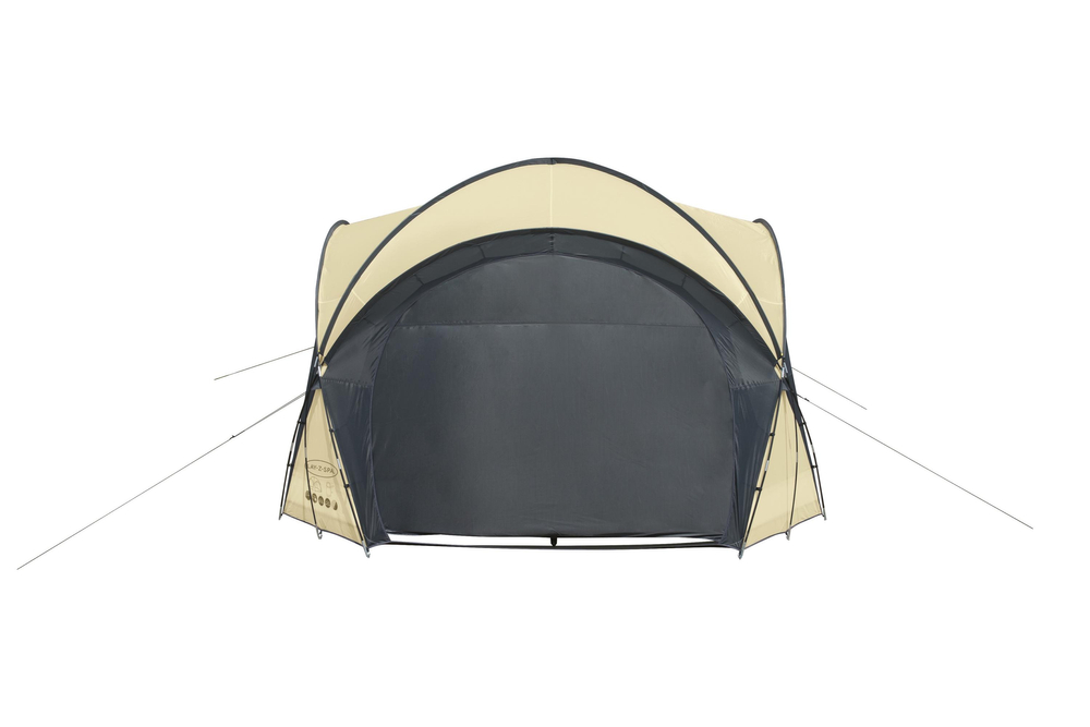Rozkładany namiot to idealne rozwiązanie na upalne dni. Kompatybilna ze wszystkimi nadmuchiwanymi spa i basenami o średnicy do 3,66 m, zapewnia prywatność i chroni przed deszczem, słońcem i innymi czynnikami pogodowymi. Altana jest podobna do namiotu i ma 4 duże kieszenie do przechowywania przedmiotów osobistych oraz 4 zdejmowane drzwi z tkaniny i siatki. Namiot może być używana przez cały rok. Montaż jest szybki i łatwy – zajmuje tylko 15 minut. 255 cm wysokości umożliwia komfortowe wejście do basenu i swobodne poruszanie się