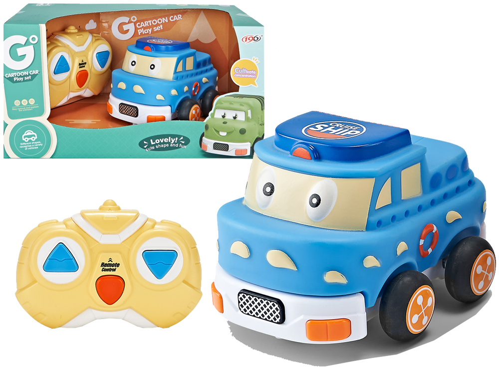 Autko posiada gumowe koła, przez co ma lepszą przyczepność do podłoża. Niebieską, gumową nakładkę z wesołą miną, oczkami i rogami można bez problemu zdjąć i umyć pod bieżącą wodą. Kolejną zaletą jest zdalne sterowanie, pilotem w kolorze żółtym steruje w przód, tył i na boki. Nadaje na częstotliwości 2,4 G.