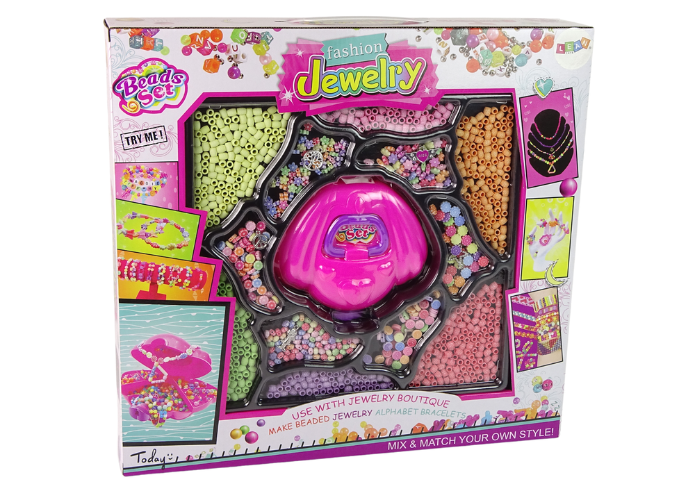 Ogromny Zestaw Koralików Do Robienia Biżuterii + Kuferek Muszla