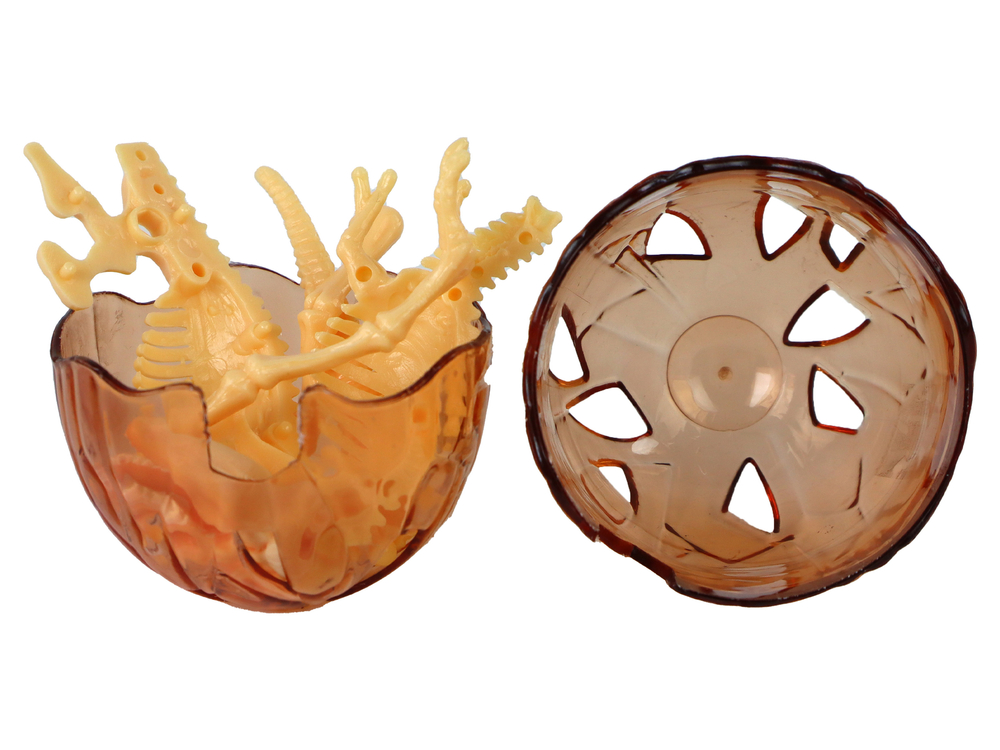 Zapraszamy do fascynującego świata naszych jaj dinozaurów! Każde jajo, o wymiarach 9 cm x 6 cm x 6 cm, wykonane jest z wysokiej jakości, przezroczystego plastiku, który umożliwia oglądanie zawartości. Wewnątrz znajduje się losowy model plastikowego, żółtego szkieletu dinozaura, którego składanie dostarcza dodatkowych atrakcji. To zabawka, która ćwiczy umiejętności motoryczne, koordynację ruchową i koncentrację.