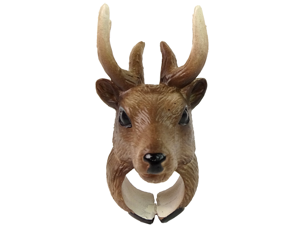 Pierścień przedstawia głowę jelenia z długimi porożami. Całość pomalowana nietoksycznymi farbami, całkowicie bezpieczne dla dzieci.