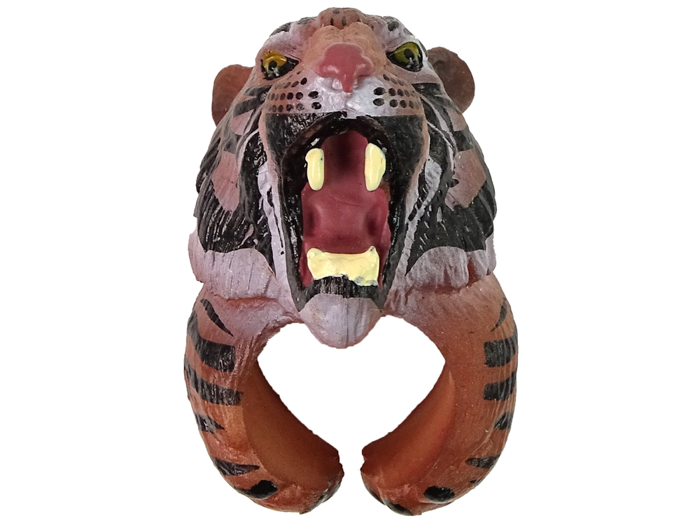 Pierścień przedstawia głowę tygrysa bengalskiego. Całość pomalowana nietoksycznymi farbami, całkowicie bezpieczne dla dzieci.
