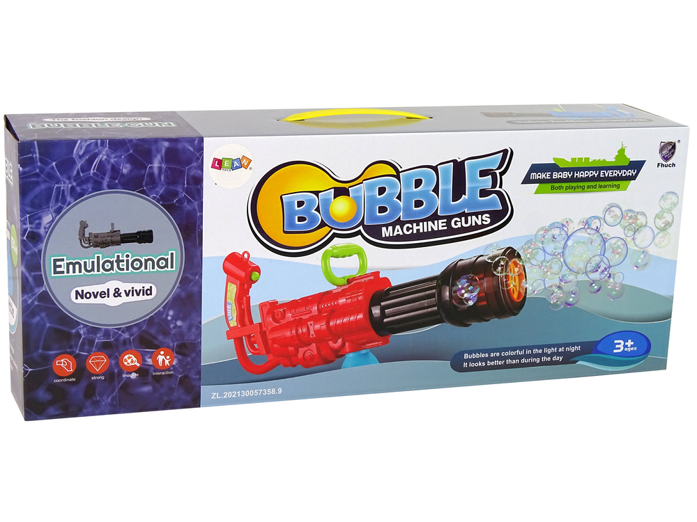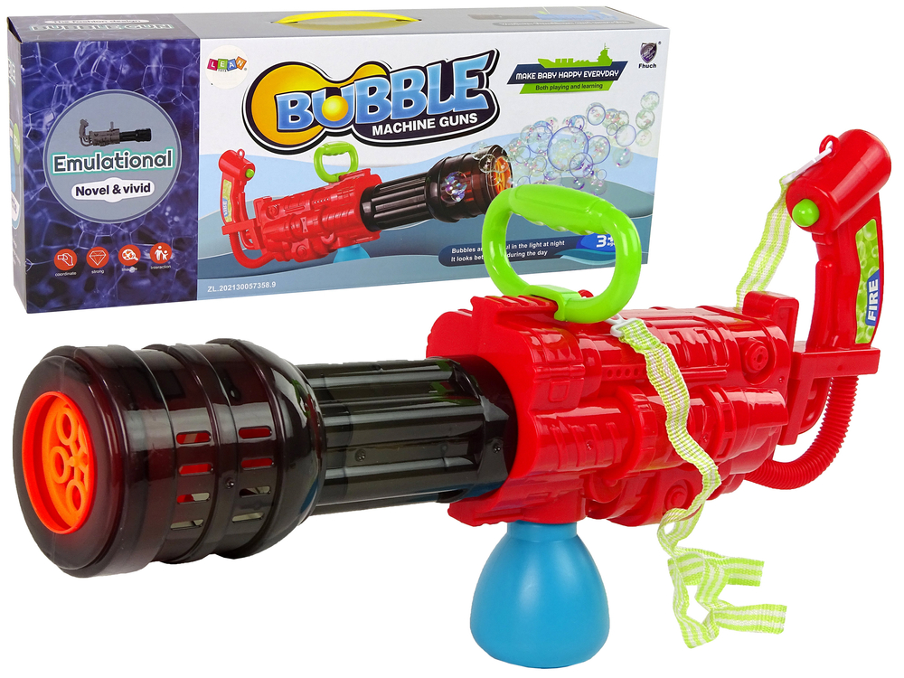 Pistolet na bańki mydlane to zabawka, która spodoba się każdemu dziecku — zarówno chłopcom, jak i dziewczynkom. Zabawa z jego wykorzystaniem umożliwia podziwianie szybujących w powietrzu tęczowych baniek mydlanych, które pięknie mienią się w różnych kolorach. Może zrobić ich dziesiątki!