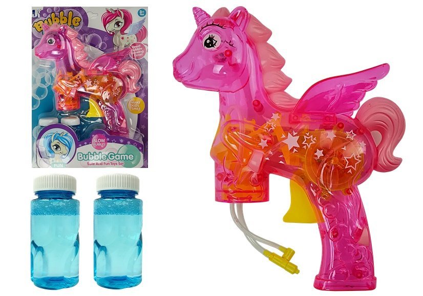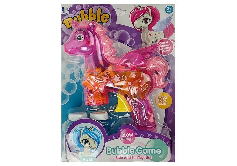 Konstrukcja prezentowanej zabawki łączy w sobie budowę charakterystyczną dla pistoletów ze wzornictwem związanym jednorożcami. Jak widać, fantastycznie łączy się to w całość, zmieniając zwykłą maszynkę do robienia baniek mydlanych w oryginalną, niespotykaną zabawkę. Dużym atutem są efekty specjalne w postaci święcącego elementu, załączające się po wciśnięciu spustu. Obsługa zabawkowego pistoletu jest bardzo prosta, przedstawiono ją w obrazkowy sposób w tylnej części opakowania. Wystarczy odkręcić zakrętkę buteleczki z płynem, usunąć zabezpieczenie i wkręcić do pistoletu. Po każdorazowym naciśnięciu spustu z pistoletu zaczną wydostawać się przepiękne, kolorowe bańki mydlane.