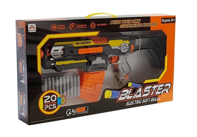 Pistolet ma piankową amunicję i został wykonany z atestowanego materiału, co zmniejsza prawdopodobieństwo jakiś urazów, dodatkową naboje nie mają ostrych krawędzi. Na amunicję posiada wyjmowany magazynek. Jego obsługa jest bardzo prosta, wystarczy włożyć baterie, naładować naboje i nacisnąć na spust.