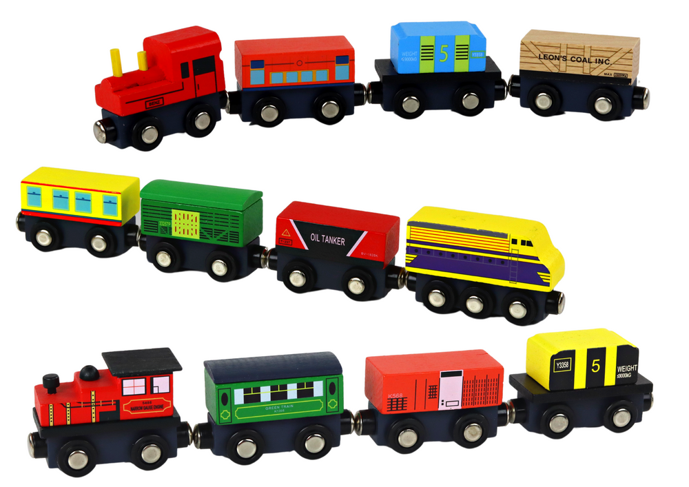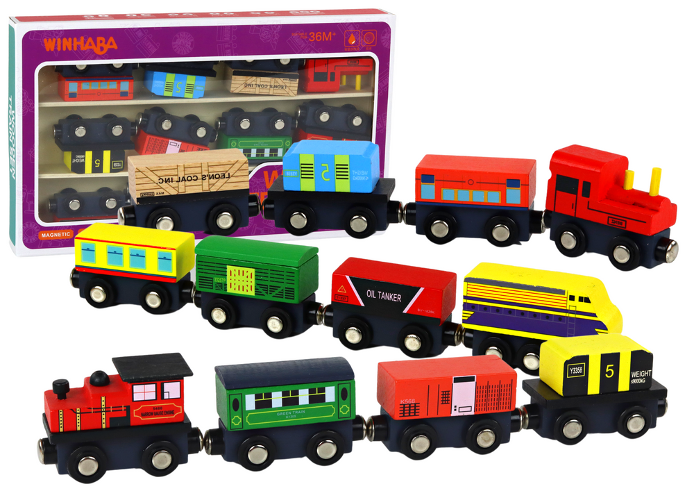 Każda lokomotywa i wagonik zostały wyposażone w magnesy, co pozwala dziecku swobodnie zmieniać kolejność wagoników i tworzyć różne zestawy. Dzięki temu dziecko może kreatywnie eksperymentować z konfiguracjami pociągów, co rozwija jego zdolności manualne, koordynację ruchową i wyobraźnię.