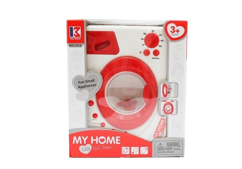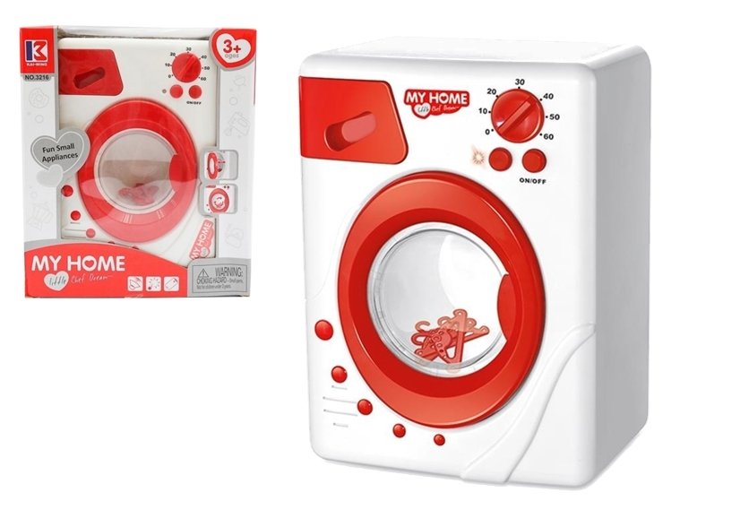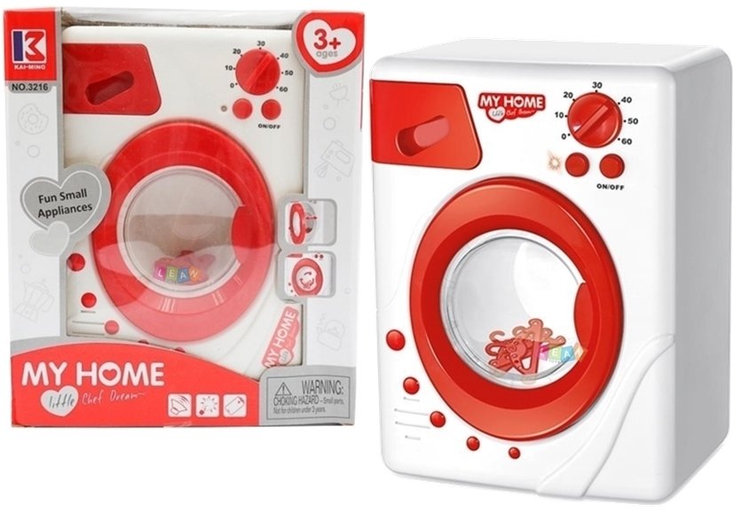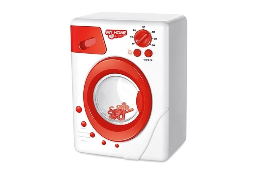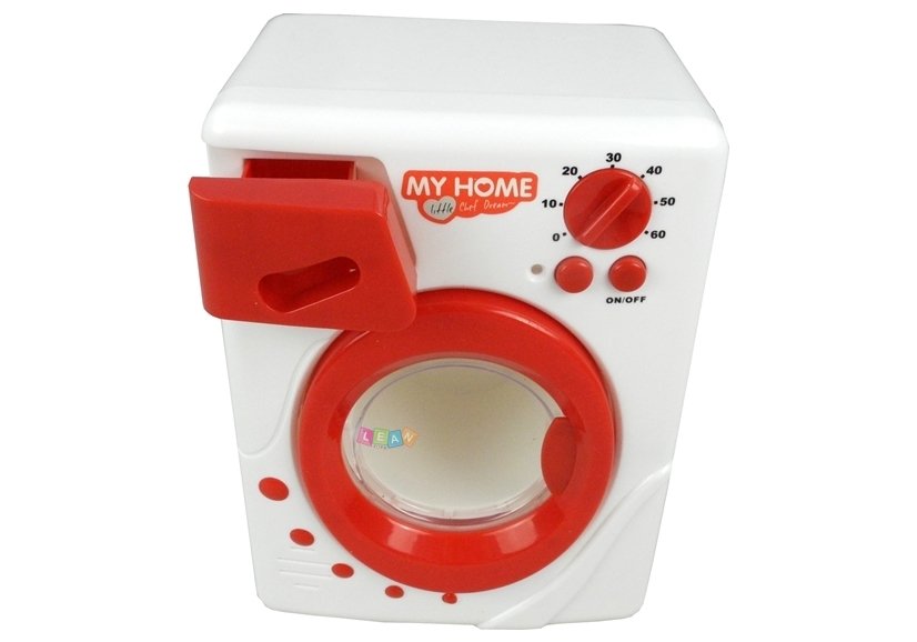 Pralka działająca jak prawdziwa! Wykonana z dobrej jakości plastiku, w ładnych kolorach. Otwierana pralka ma wysuwaną szufladkę na proszek. Po włączeniu zabawki bęben w środku kręci się. Podczas pracy pralki słychać dźwięki silniczka.