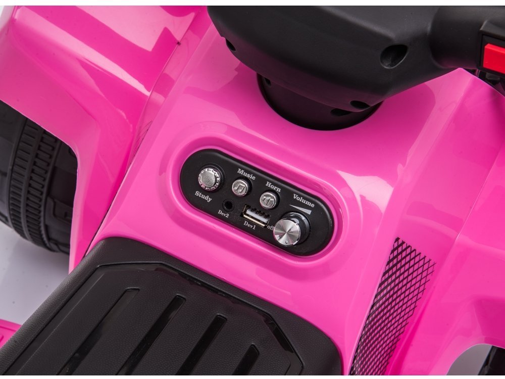 Dziecięcy pojazd na akumulator wygląda jak prawdziwy quad — z tą różnicą, że rozmiarem dostosowano go do kilkuletniego dziecka. Solidna i mocna konstrukcja wykonana z wysokogatunkowych materiałów odpowiada za nieustanną zabawę przez długie lata. Quad akumulatorowy JS320 zaprojektowano w nowoczesnym stylu, co zadowoli gusta nie tylko najmłodszych miłośników zabawek motoryzacyjnych, ale i ich rodziców. Dopracowane w najmniejszym calu wnętrze i elementy imitujące realne części sprawią, że Twoja pociecha poczuje się jak na prawdziwym quadzie.