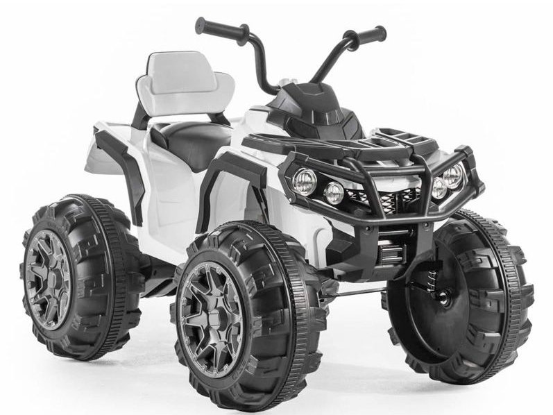 Duży, mocny i co najważniejsze, wykonany z wysokogatunkowego tworzywa quad. Pojazd zaprojektowany w nowoczesnym, terenowym stylu, zadowoli gusta najmłodszych miłośników motoryzacji. Prezentowany sprzęt wyróżnia się chromowanymi elementami, miękkimi, skórzanymi elementami, a także amortyzatorami ułatwiającymi jazdę po nierównych terenach. Quad posiada wejście na USB, MP3 i karty SD, jednak możliwe jest też uruchomienie radia FM.