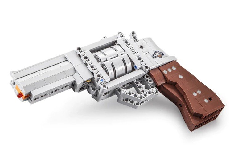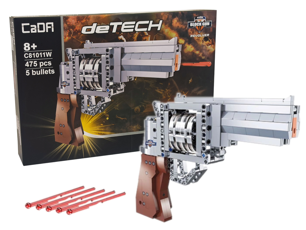 Zestaw składa się z 475 klocków. Instrukcja pozwala na samodzielne zbudowanie rewolwera. Pistolet ma dodatkową zaletę, posiada wiele elementów ruchomych i można strzelać pociskami dołączonymi do zestawu. Obrotowy magazynek, ruchomą zawleczkę oraz spust to jedne z zalet tego modelu. Klocki są wytrzymałe i bardzo łatwe w łączeniu.
