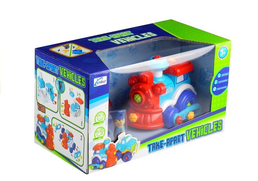 Zabawka zapakowana jest w estetyczne, kolorowe pudełko z witrynką. W jego bocznej części znajduje się instrukcja, przedstawiająca w dokładny sposób proces prawidłowego składania zabawki. Kolorowy pociąg przeznaczony jest dla wszystkich dzieci powyżej 3. roku życia, do których dostosowany jest poziom trudności złożenia zabawki.