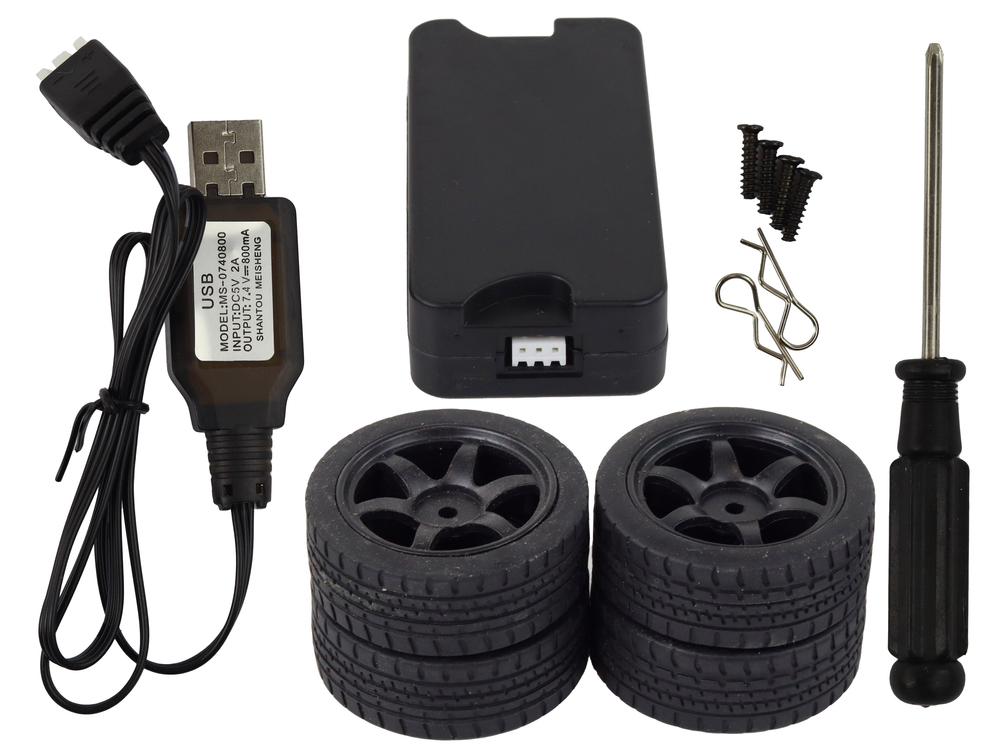 Samochód RC jest wyposażony w DWA akumulatory o dużej pojemności 1200 mAh i ładowarkę USB, która zapewnia długą żywotność i szybkie ładowanie.