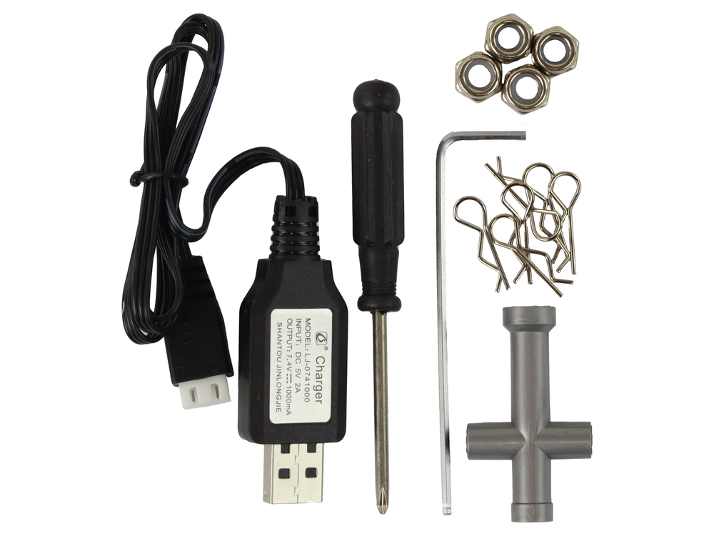 Samochód RC jest wyposażony w akumulator o dużej pojemności 1400 mAh i ładowarkę USB, która zapewnia długą żywotność i szybkie ładowanie.