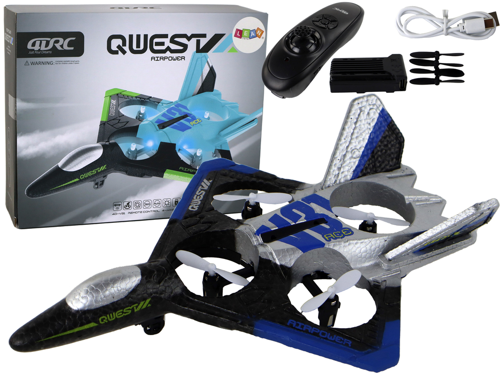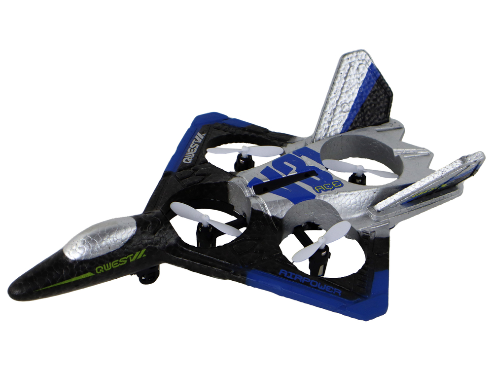 Wymiary samolotu wynoszą: 24 cm x 6 cm x 18 cm, co sprawia, że jest odpowiedniej wielkości dla dzieci do zabawy, natomiast pilota: 13 cm x 5 cm x 4 cm, co czyni go poręcznym i łatwym do trzymania w dłoni.