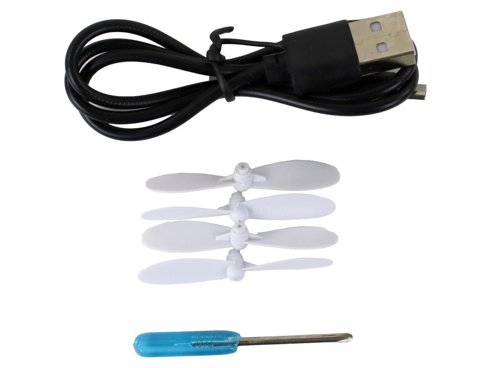 W zestawie dołączone są również cztery wymienne śmigła oraz kabel do ładowania.